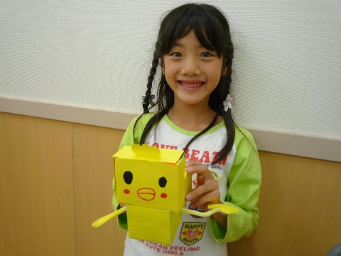 長い足にストローで作った顔やしっぽのキリンを作ったKくん。たくさんの廃材に大興奮。 かわいいペンギンとカメを作ったのはMちゃん。うまく廃材を活用しました。 冷凍食品のパックの足がついたカメを作ったのはAちゃん。顔もいい感じです。 ガムテープの芯や牛乳パックでライオンを作ったTくん。しっぽと頭が動きます。 首振りのキリンを作ったHちゃん。模様は「忘れてた!」と。 しゅんたくんは作っているうちにキックボードに。本当にタイヤも動きます。 年中の圭司くん。さすが教室ベテランだけあって、何も言わずに自分で工夫して口の開くカバを作りました。さすが! 牛乳パックでかわいいピンクのウサギを作ったYちゃん。うまく立って拍手! 「何作ったん?」の質問に「わからん〜」とRちゃん。なんだかビッグサイズのお花のようです。 とってもかわいいわんちゃんを作ったYちゃん。緑が鮮やかなわんちゃんです。 茶色の犬を作ったMちゃん。しっぽもぶらぶらうごきます。 黒ねこの耳はピンク。大きな目をかわいいUちゃんの作品。 ドラゴンを作ったMくん。足のつけ方に一苦労。 「めっちゃながくなった〜」と龍を作ったAくん。迎えにきたお父さんも「どうやって持ってかえんねん!」と思わずつっこみ! 緑のカメは首としっぽが動きます。Iくんは仕上げもとても丁寧です。 Kちゃんは黄緑のカメを。背中の甲羅にも模様を描きました。 銀色のテープを使ってぞうを作ったTくん。バランスのいい体つきです。 長い芯材をたくさん使ってうさぎを作ったMちゃん。大きな目がかわいいね。 大きなキリンを作ったAちゃん。Aちゃんが乗れるぐらいの力作です。 「ほら!ここもうごくで!」とストローなどでいっぱい工夫していたNくん。 とてもかわいいカンガルー親子を作ったHちゃん。ポケットから子どもが飛び出します。 ペットボトルのふたで歯を作ったTくんの巨大わに。口がかちかちと鳴ります。 まるで日本昔話のオープニングに出てきそうな龍を作ったSくん。羽の形にもこだわりました。 Nくんは2つめの作品。頭にふさふさをつけたドラゴンです。 口から舌をペロリと出した蛇を作ったSくん。しっぽを引っ張ると首が動く仕組みを一生懸命考えていました。 タオルの箱をうまく使って割り箸に顔をたくさんつけたMちゃん。かわいいねこちゃんたちが並んでいます。 「めちゃめちゃながいで〜」と大好きな黄色の電車を作ったTくん。Tくんの身長よりもなが〜い電車です。 Nちゃんは発泡スチロールのおわんでウサギを作りました。芯材の耳にはストローが入っていて曲がる仕組みになっています。 しっぽが動く魚を作ったRくん。ひれの形なども写真をみながら丁寧に。 白くてかわいいうさぎは両手がくるくる動きます。Aちゃんの作品。 割り箸などでくわがたを作ったTくん。足のつけ方が絶妙です。 配色がいつもきれいなHくん。テープや画用紙もうまく利用して作っていきます。 すご〜く足がながいうさぎちゃん。Sちゃんはこわれないようにそっと持って帰っていました。 Wくんはストローをつなぎ合わせて足をたくさん作ったくも。形もリアルにできました。 迫力のある顔がついたライオンはSくん。しっぽも顔も動きます。 羽がくるくる回る仕組みを作ったAちゃん。カラフルな羽のアヒルがかわいい! 黄色いひよこは羽がぱたぱた。Rちゃんらしいきれいな羽のひよこです。 ゆっくりじっくり考えて作るKちゃん。ティッシュの箱でかわいいいぬちゃん。 黄色のねこちゃんは手が動きます。Nちゃんの顔にちょっと似てる? 空き箱を入れてきた段ボールで巨大なぶたさんを作ったKちゃん。あまりの大きさに大笑い。