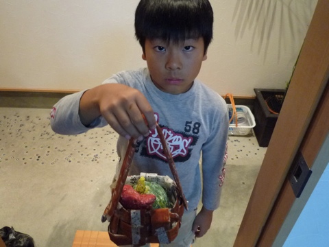難しかったようですが、野菜をいれると本物のかごみたい!